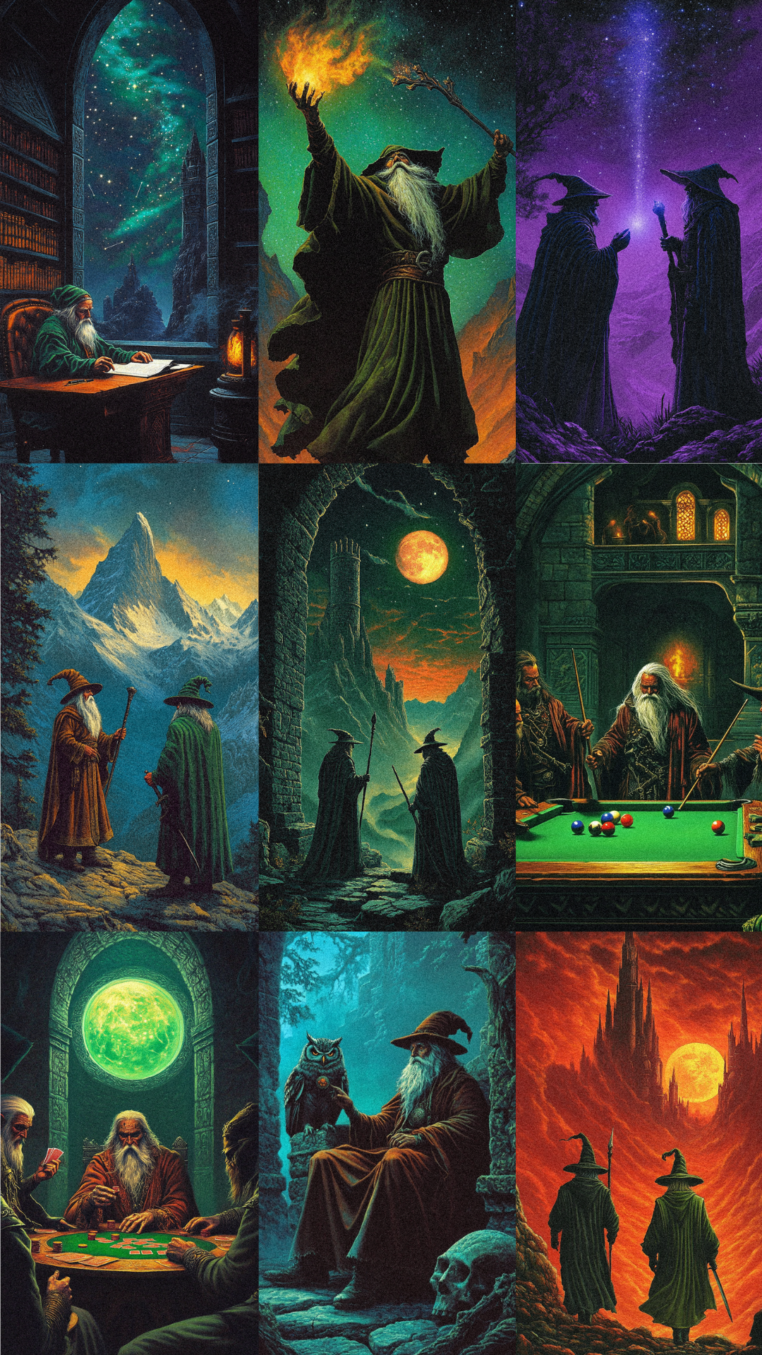 ✨ Each design showcases powerful wizards in awe-inspiring locations, casting spells, and performing fun & extraordinary activities.